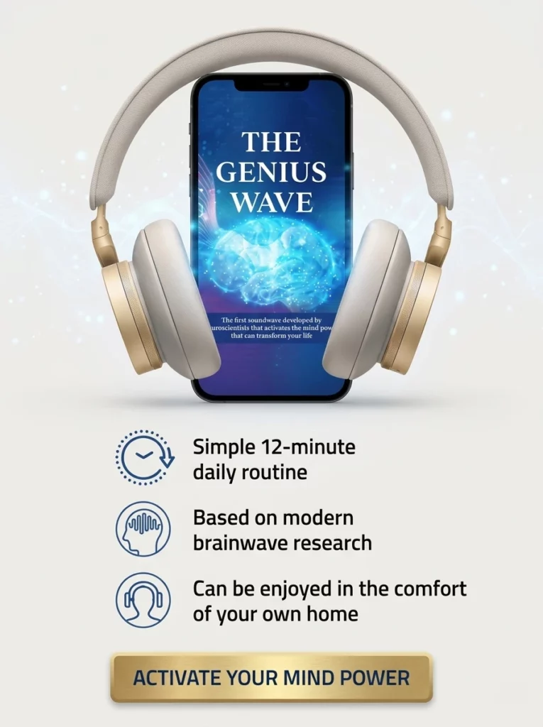 The Genius Wave is an audio-based brainwave entrainment program designed to improve focus and mental clarity using specific sound frequencies. It aims to shift the brain into an alpha or theta state through a daily, seven-minute listening session.